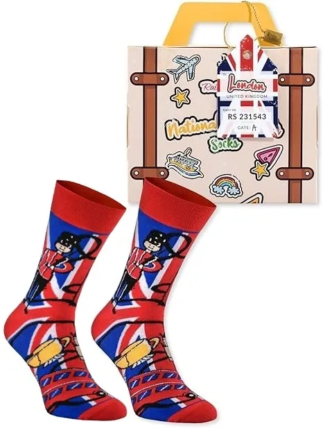 Wenn du jemanden kennst, der ohne Reisen nicht überleben kann, brauchst du keine Liste der Reiseziele zu überprüfen, denn Großbritannien findest du dort auf jeden Fall! Mach ihm eine kleine Überraschung und lass ihn seine Koffer packen – wähle ein stilvolles Sockenset, das sich ideal für einen Nachmittagsspaziergang entlang der Downing Street eignet. Kennst du jemanden aus Großbritannien? Wir sind davon überzeugt, dass diese Socken ihn positiv überraschen werden.