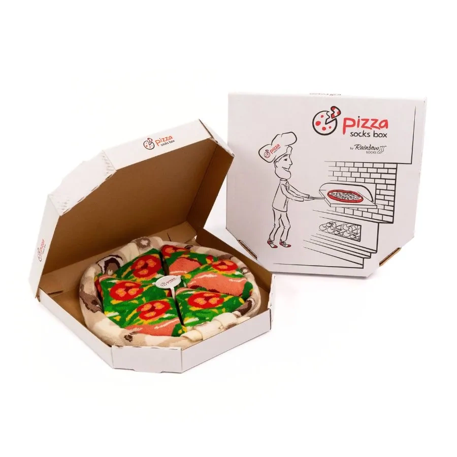 Es ist wirklich schwer, eine Person zu finden, die keine frische und heiße Pizza mag! Und noch schwieriger ist es, jemanden zu finden, der keine Socken trägt! Was würde passieren, wenn wir diese beiden Dinge kombinieren würden? Die Antwort ist einfach: die einzigartige Pizza-Socken-Box von Rainbow Socken. Dieses Mal haben wir uns von der traditionellen italienischen Pizza inspirieren lassen!