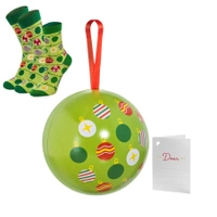 Kinder-Weihnachtssocken in einer Christbaumkugel